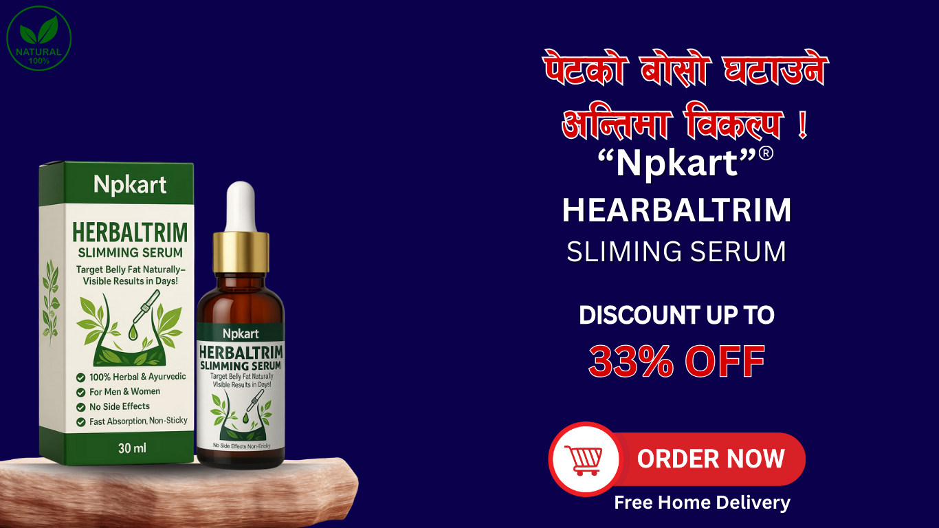 प्राकृतिक जडीबुटीहरुको मिश्रण बाट तयार पारिएको "HEARBALTRIM Slimming Serum" यसको प्रयोग ले शरीरमा भएको अनावस्यक बोसो घटाएर आफूलाई स्लिम बनाउनु होस् ।